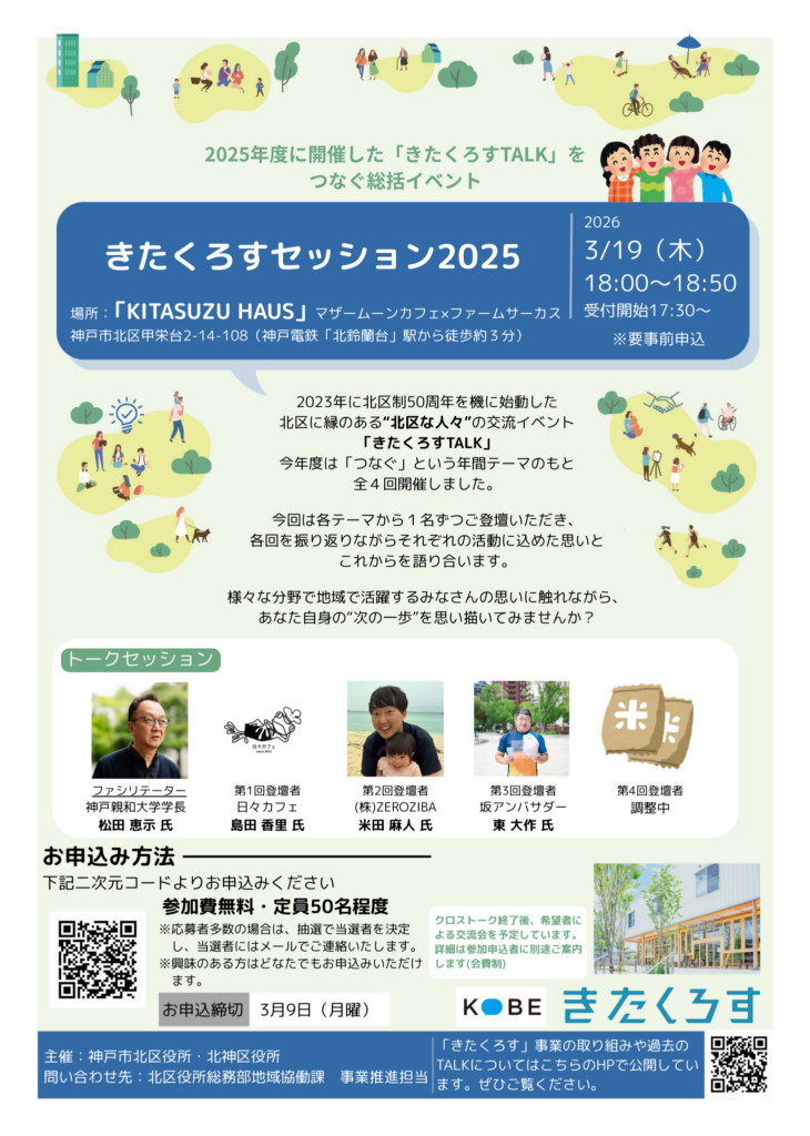 各回を振り返りながらそれぞれの活動に込めた思いとこれからを語り合う「きたくろすセッション」を開催します!